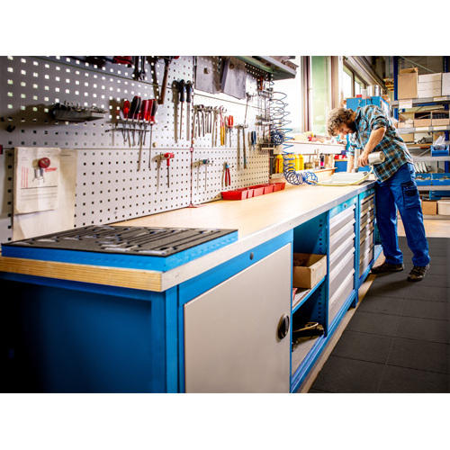 Banco da lavoro, ripiano in acciaio a metà profondità