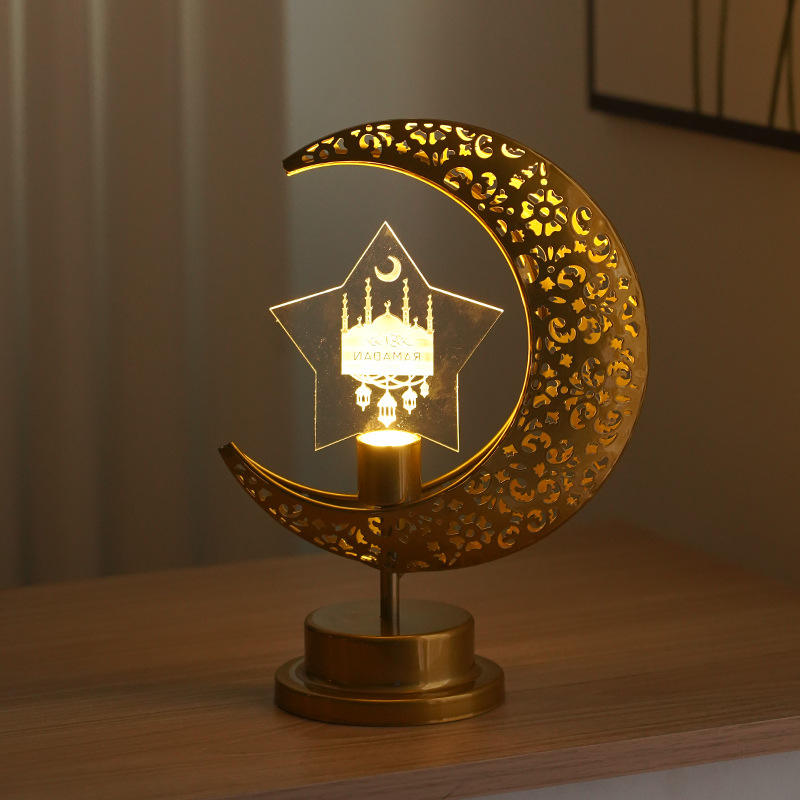 Nuovo-arrivo Eid Mubarak acrilico LED luce notturna luminosa luna e decorazione di atmosfera a forma di stella luce
