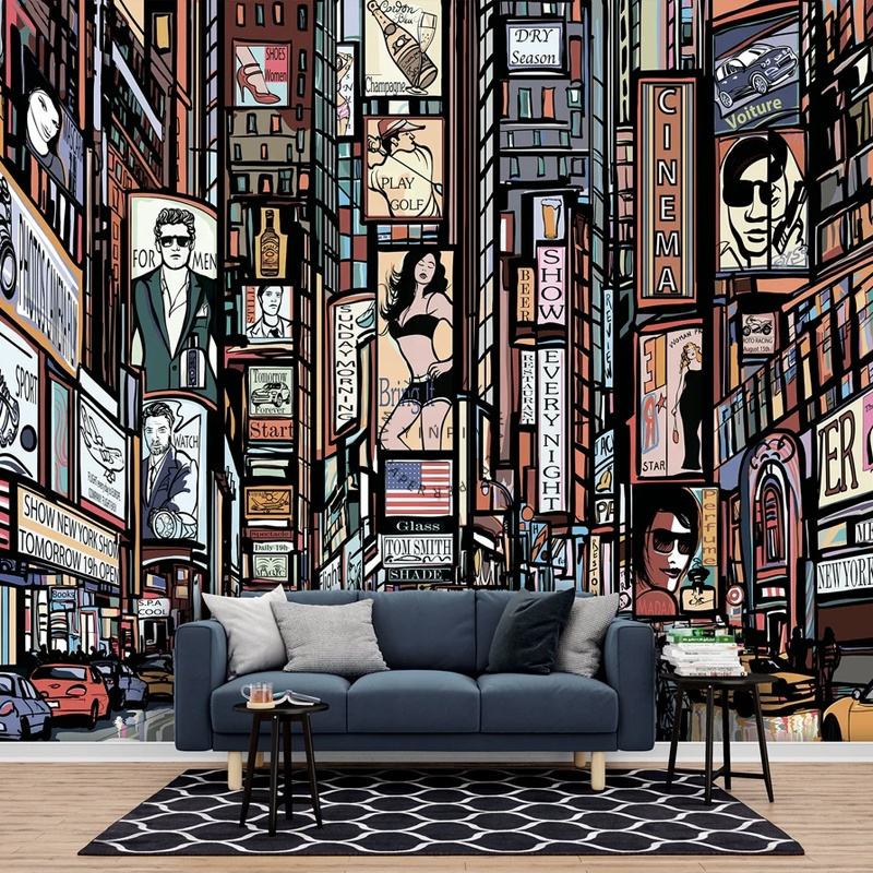 New for York City Neon Abstract Art Self-Adhesive 3D Wallpaper for Living Room Modern Botanical Design Waterproof and