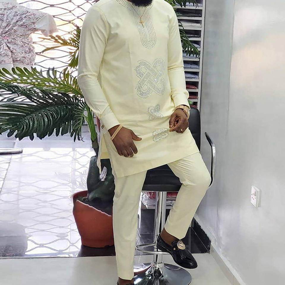 Nuovo in magazzino stile africano caldo stile etnico abbigliamento tinta unita Casual da uomo camicia e pantaloni africano due pezzi set per gli uomini
