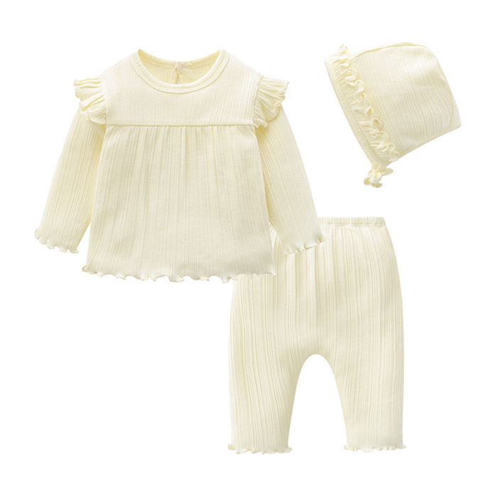 Nuovo prodotto primavera ed estate 3 pezzi di cotone 100% morbido filo elasticizzato vestiti per bambini set pagliaccetto bebè baju baby