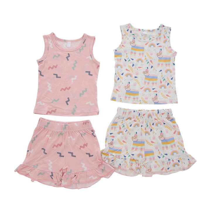 Neonato Design personalizzato vendita calda abbigliamento per bambini abbigliamento per bambini abiti per ragazze traspiranti 2 pezzi pigiama a costine in cotone set di vestiti per bambini