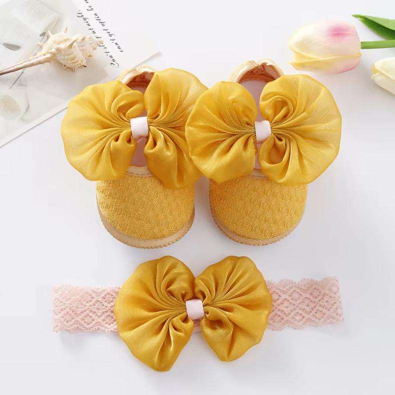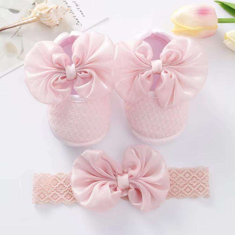 Newborn Baby Shoes Bowknot Baby Girl Shoes Headband Set Toddler Prewalker Cute Baby Soft Shoes