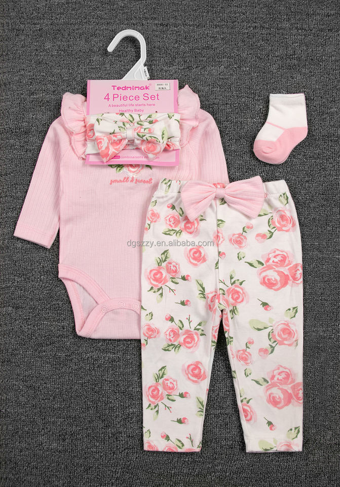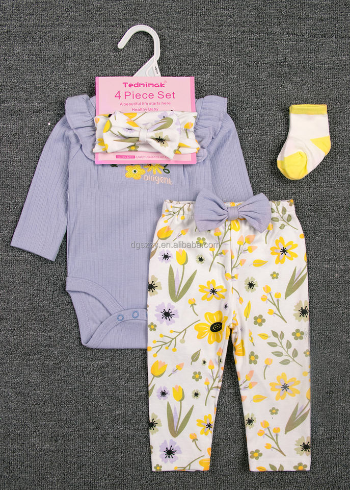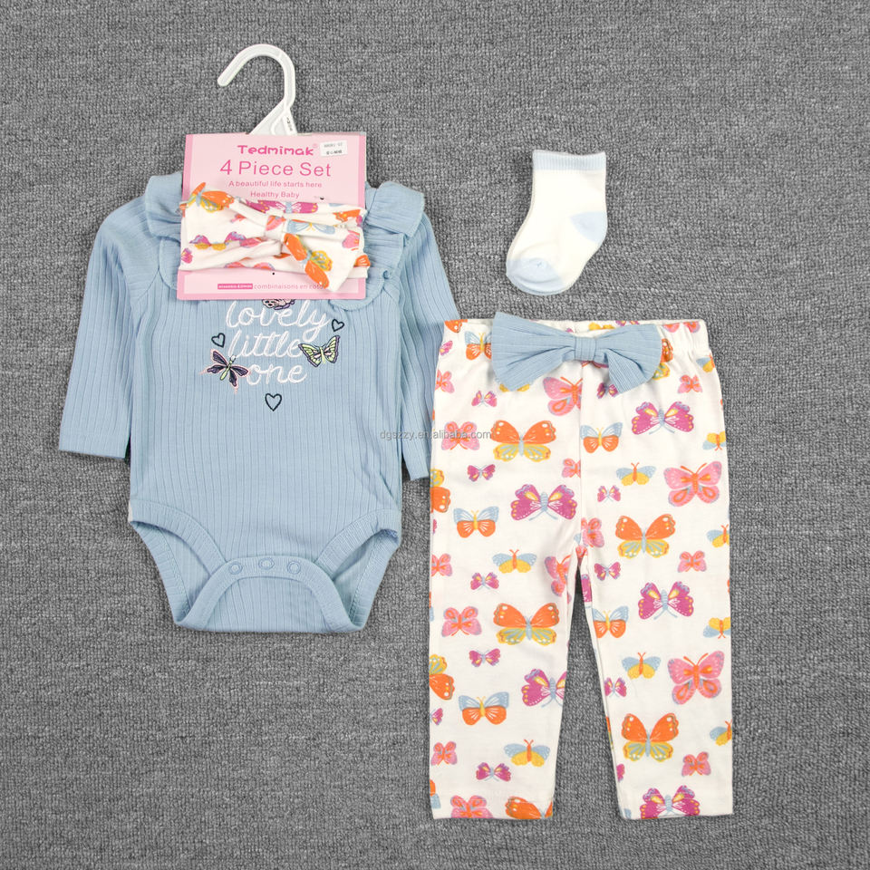 Set di Abbigliamento per Neonata, 4 Pezzi Carini da 6 a 9 Mesi, Body a Maniche Lunghe e Pantaloni con Calzini, Vendita all'Ingrosso