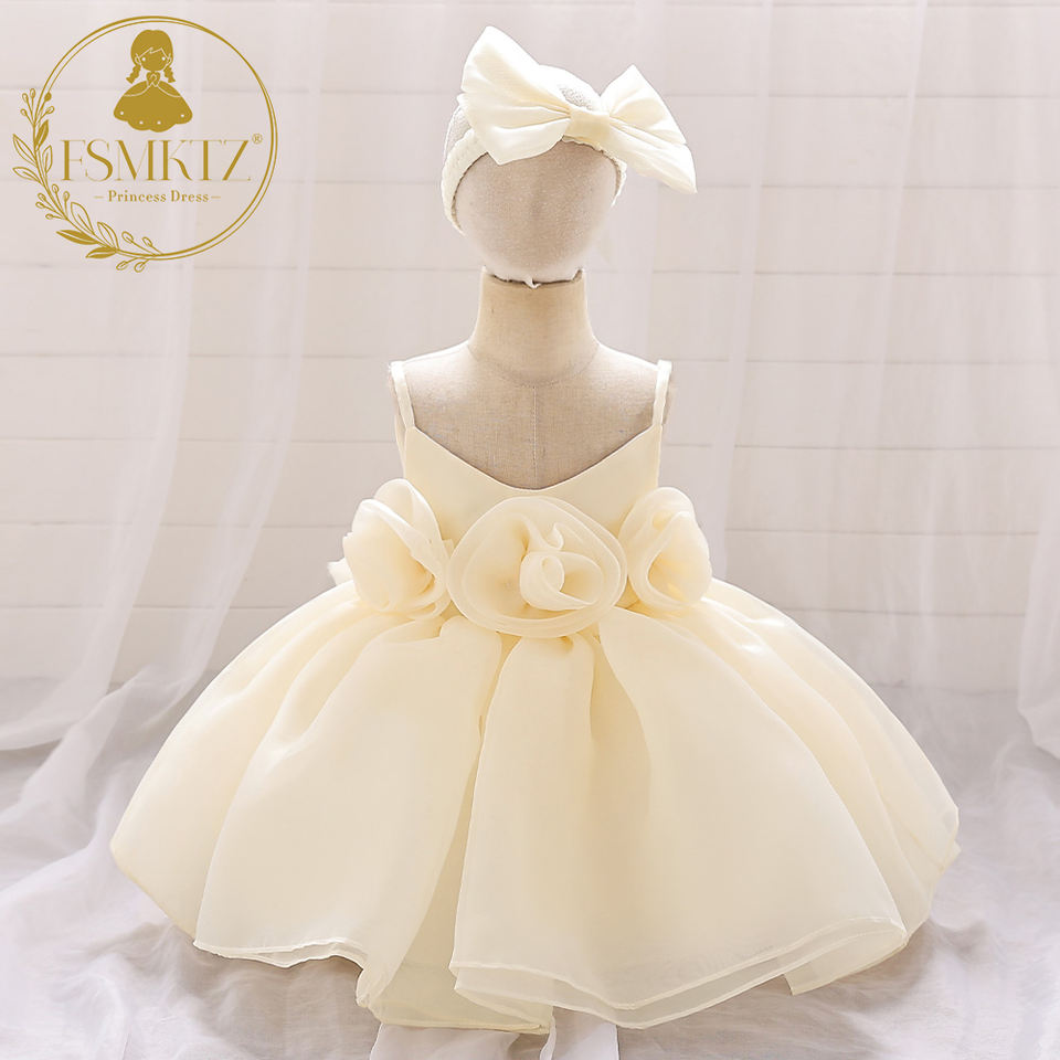 Abiti da Principessa per Neonata con Maniche a Sbuffo Senza Maniche Stampa Floreale in Raso Formale Lunghezza al Ginocchio ODM per Bambine 0-2 Anni Tutte le Stagioni