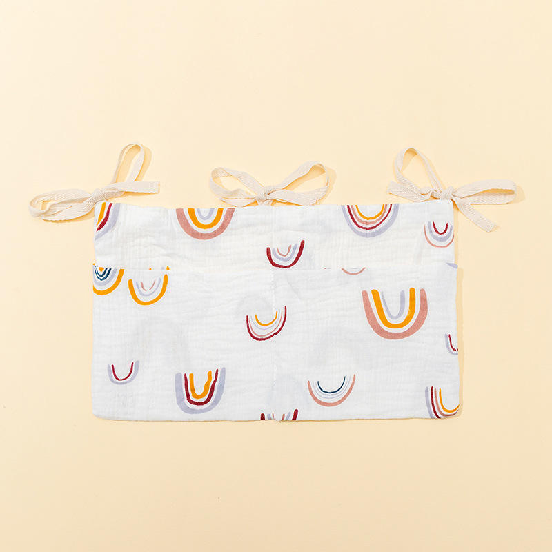Organizer in Mussola di Cotone per Neonati, Borsa Appendibile Grande Multi-Tasca per Passeggino e Culla