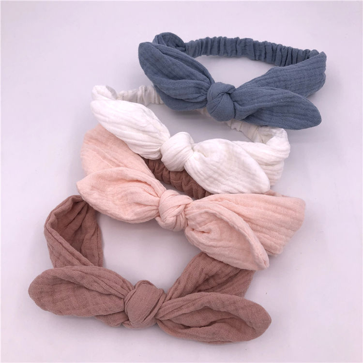 Newborn Toddler Baby Kids Original Cotton Gauze Headband Hair Band Muslin Turban Headband Bandana Bunny Ear Knotted Hairbands