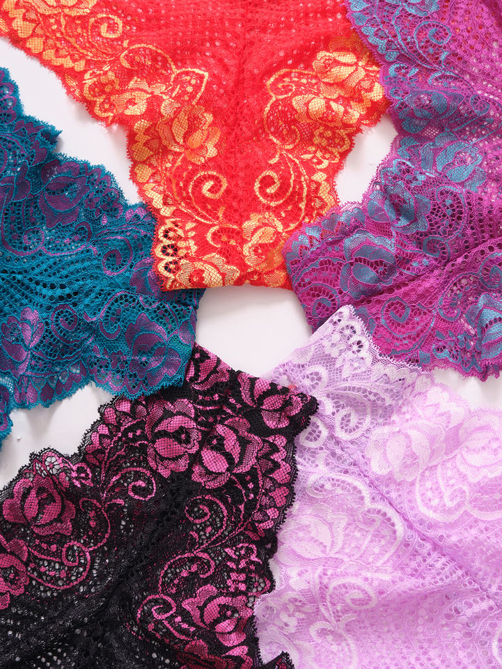 Newest 5 Colors 5 Pieces High Quality Transparent Women Sexy Lace Underwear Thong Panties Plus Size