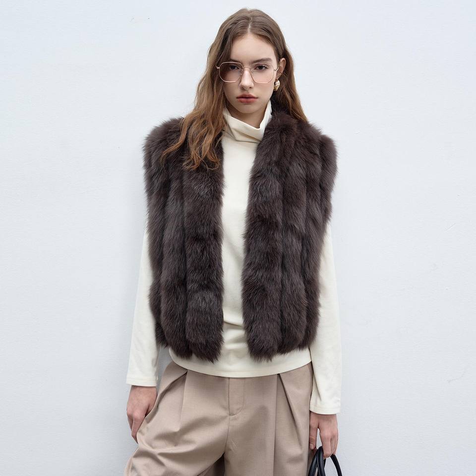 Gilet da donna in pelliccia di volpe di colore e dimensioni personalizzate dalla fabbrica di moda di Design più recente