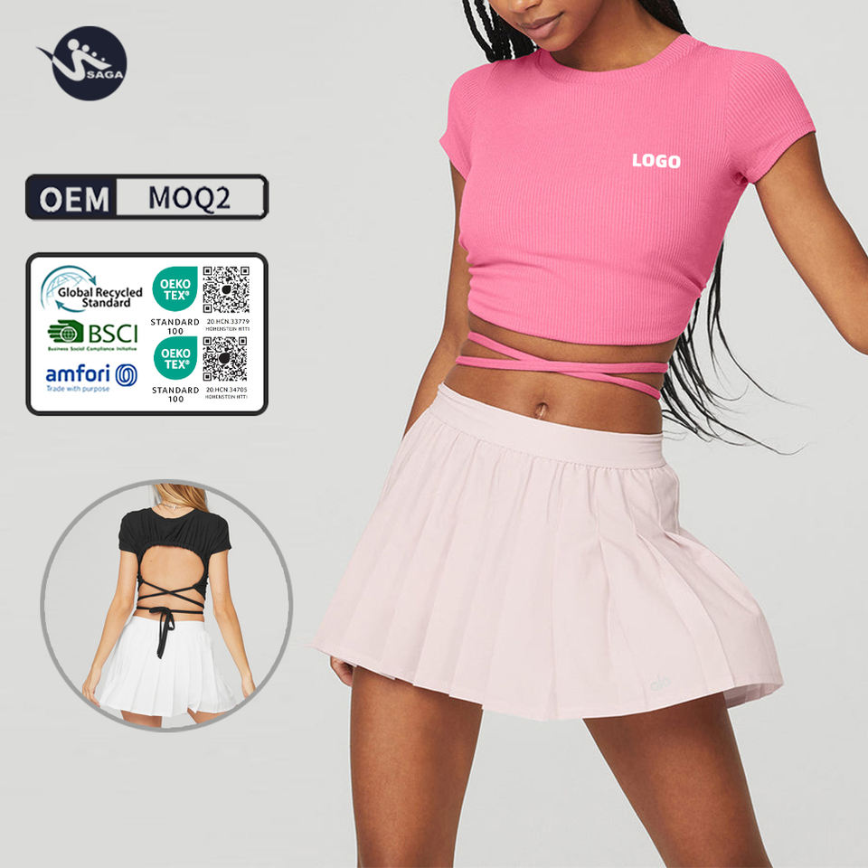 Design più recente di alta qualità da palestra Fitness Beige Crop Tee Scrunch Back cinghie da donna