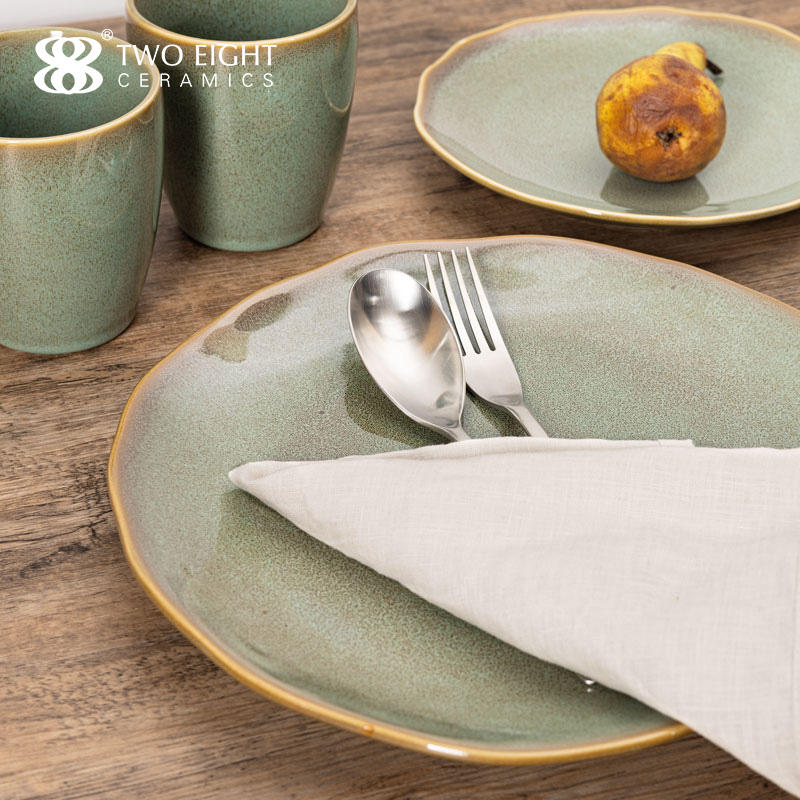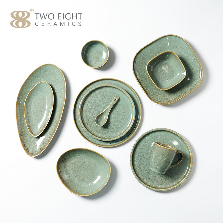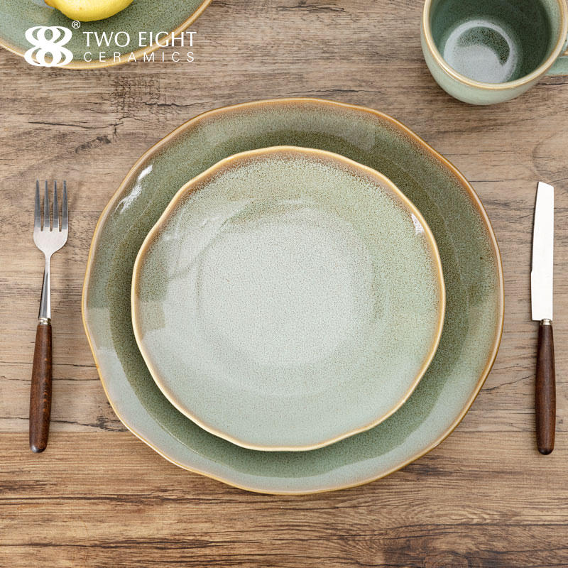 Newest Green Glazed Plates Sets Dinnerware Restaurant Hotel Supplies Dinner Plates Rustic Ceramic Shallow Dishes Plates Set