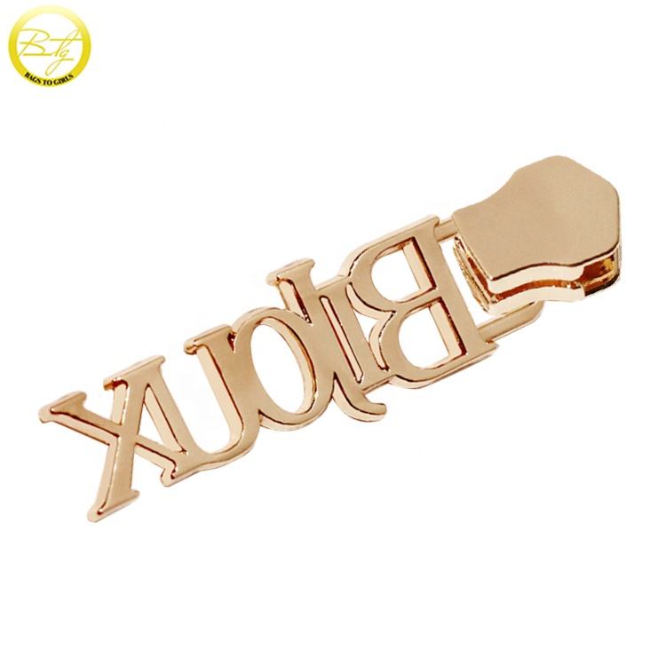 I più recenti sacchetti a tracolla con cerniera maker personalizzato in oro con lettere in metallo goffrato design del cursore dell'estrattore per bagagli