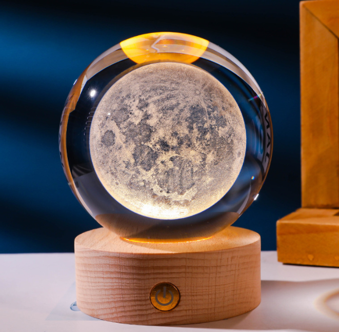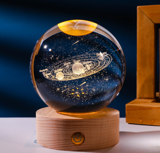 Newish 3D Carved Inside Crystal Star Galaxy Table Lamp Wood Base Children's Room Decoration Night LED Light for Kids Room