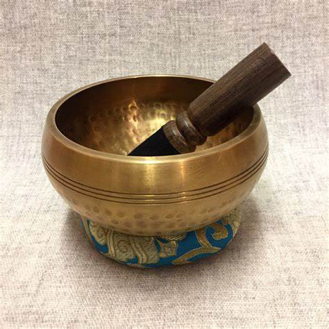 Ciotola da meditazione tibetana di nuova progettazione usata per la guarigione del Chakra con mazzuolo di legno e cuscino di seta acquista al miglior prezzo