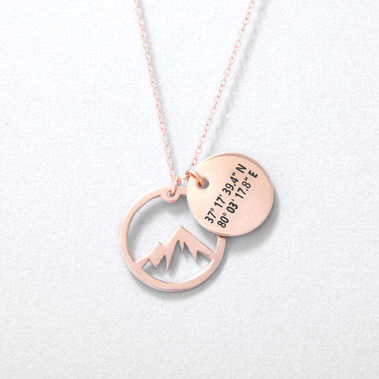 Product name:Rose Gold GPS Coordinates Necklace Wanderlust Mountain Necklace