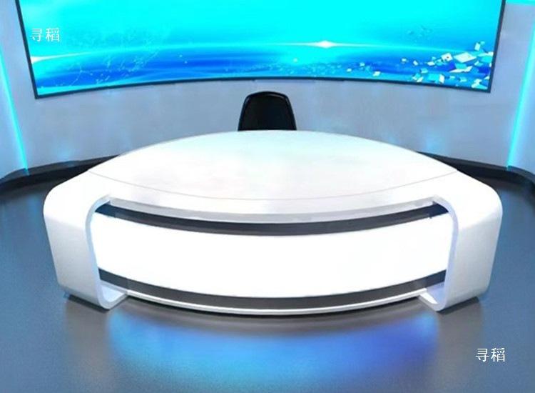 Consolle per Notiziari con Schermo LED, Logo Personalizzabile, Tavolo da Studio per Trasmissioni in Diretta, Postazione per Stazioni Radio e TV