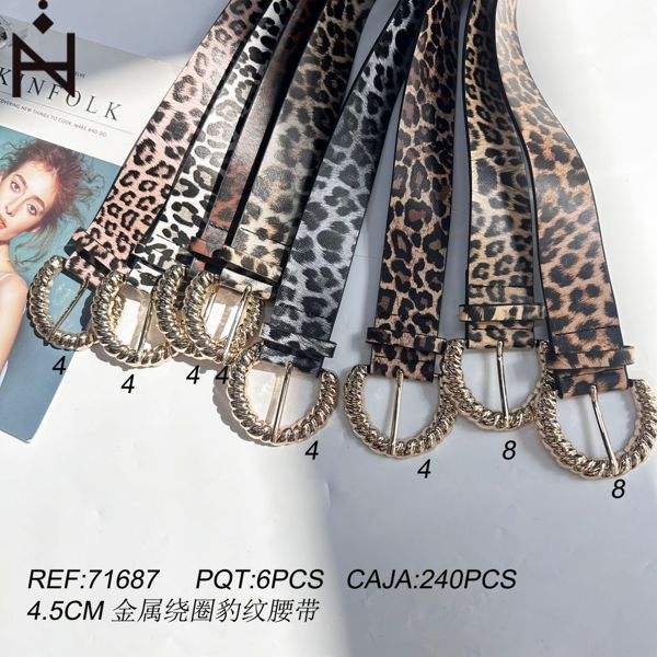 Nfolk Leopard Print Metal Belt 4.5Cm Pin Buckle Women Casual Fashion Waist Belt