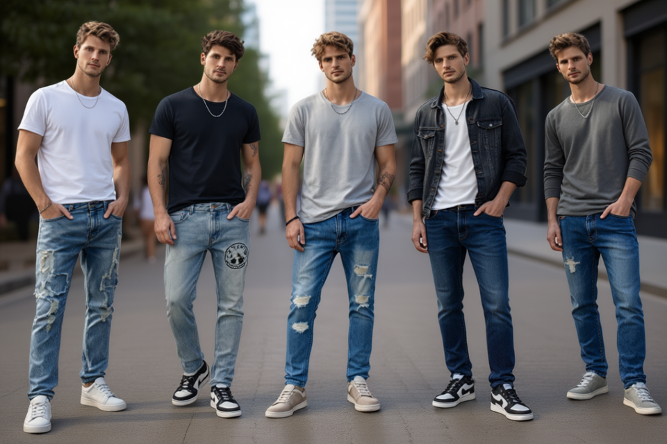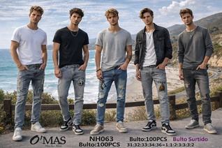 Jeans Denim Strappati da Uomo Nh063 a Gamba Dritta in Cotone di Peso Medio, Lavaggio Distressed, Stile Casual Primaverile