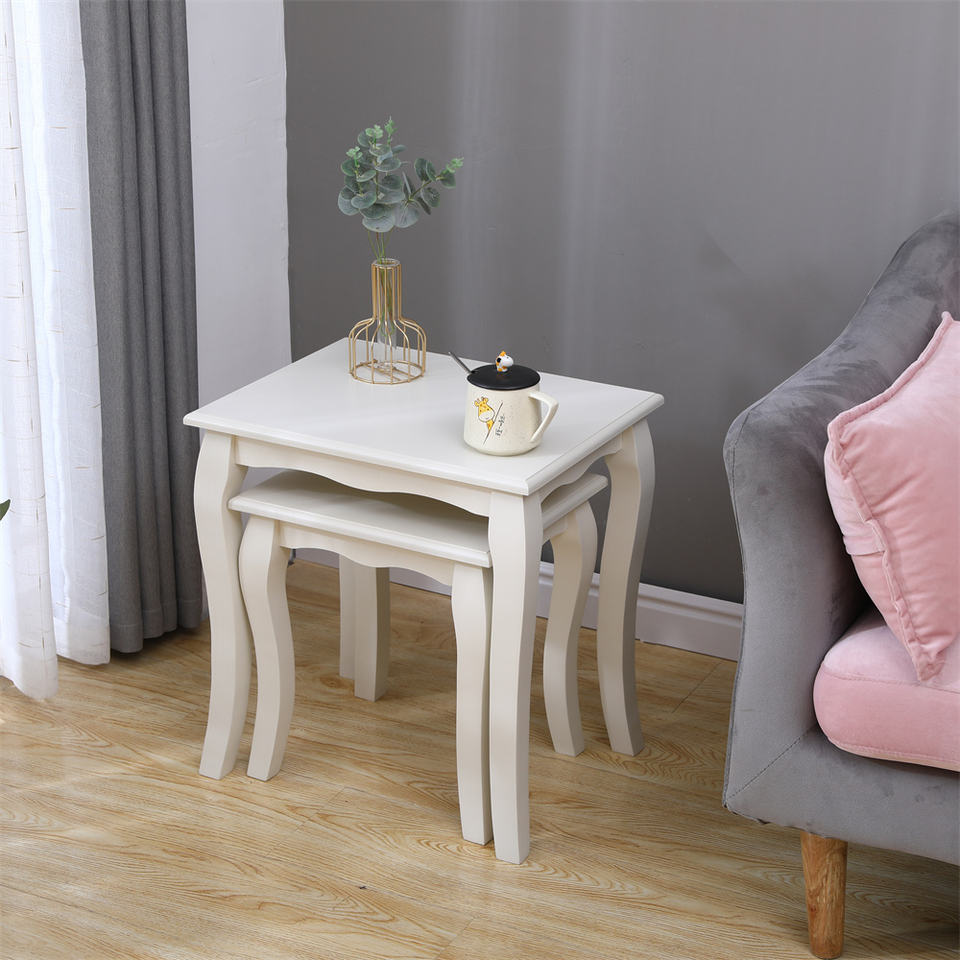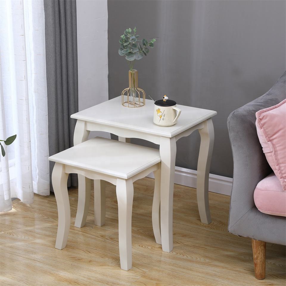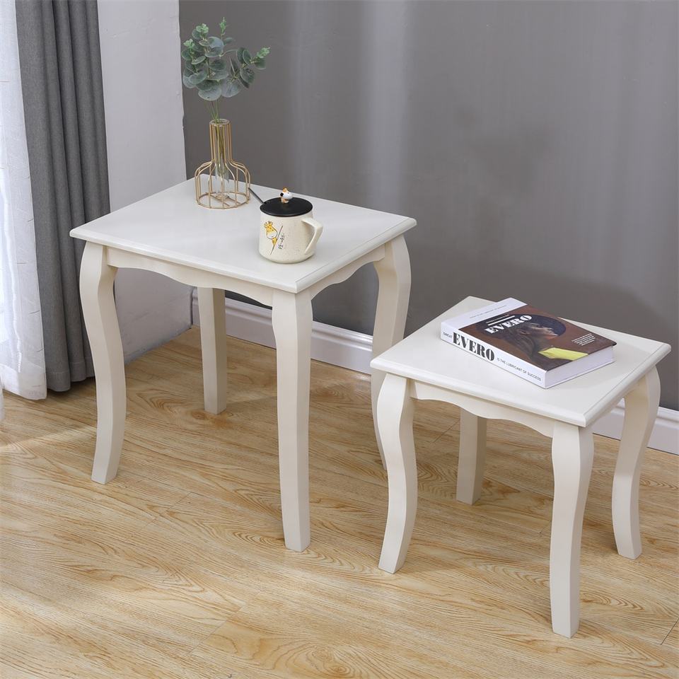 Bel moderno piccolo legno massello gambe nido di due tavolini in legno lampada nidificazione Set bianco