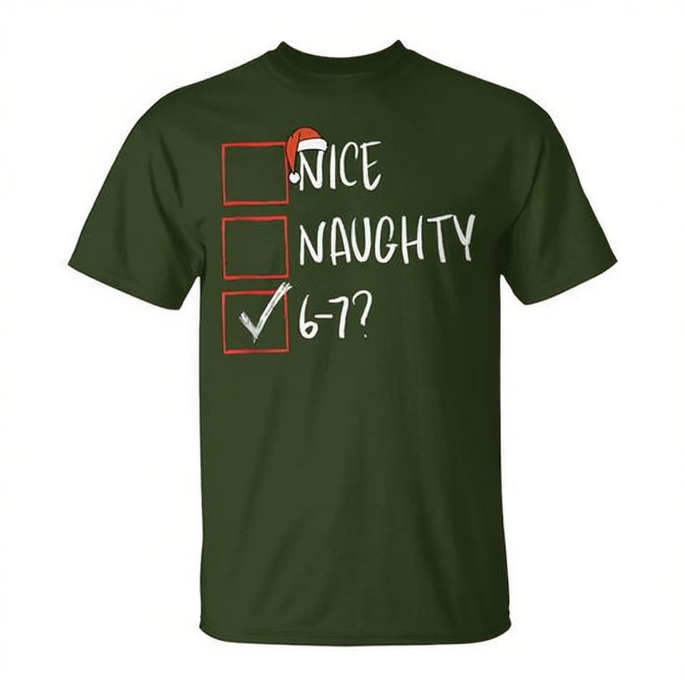 T-shirt natalizia Nice Naughty 6-7 Meme, regalo per le vacanze per Gen Alpha