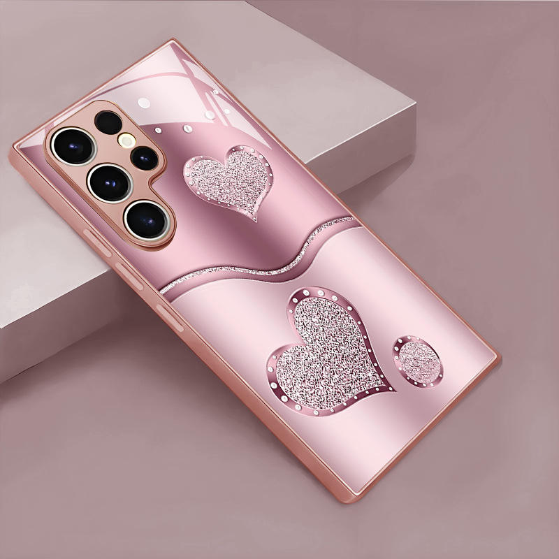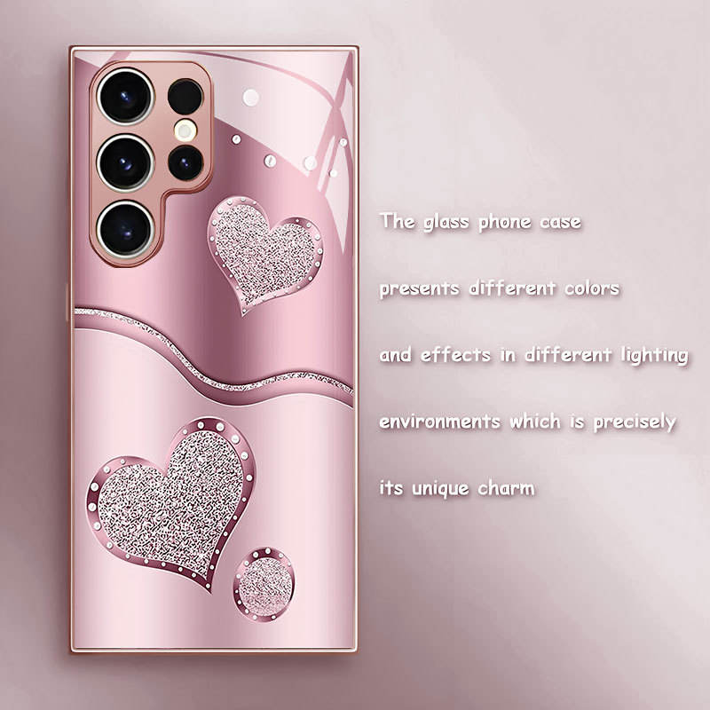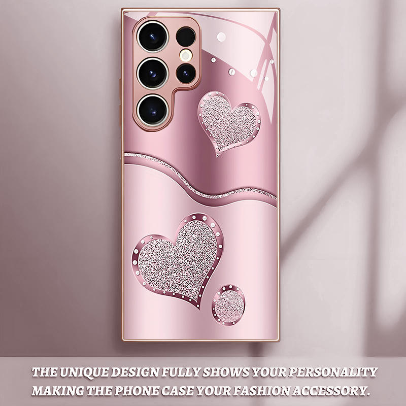 Elegante Cover per Cellulare in Vetro Temperato e TPU con Stampa Cuore Rosa per Samsung Galaxy S8 S9 S10 S20 S21 S22 S23 S24 S25 S26