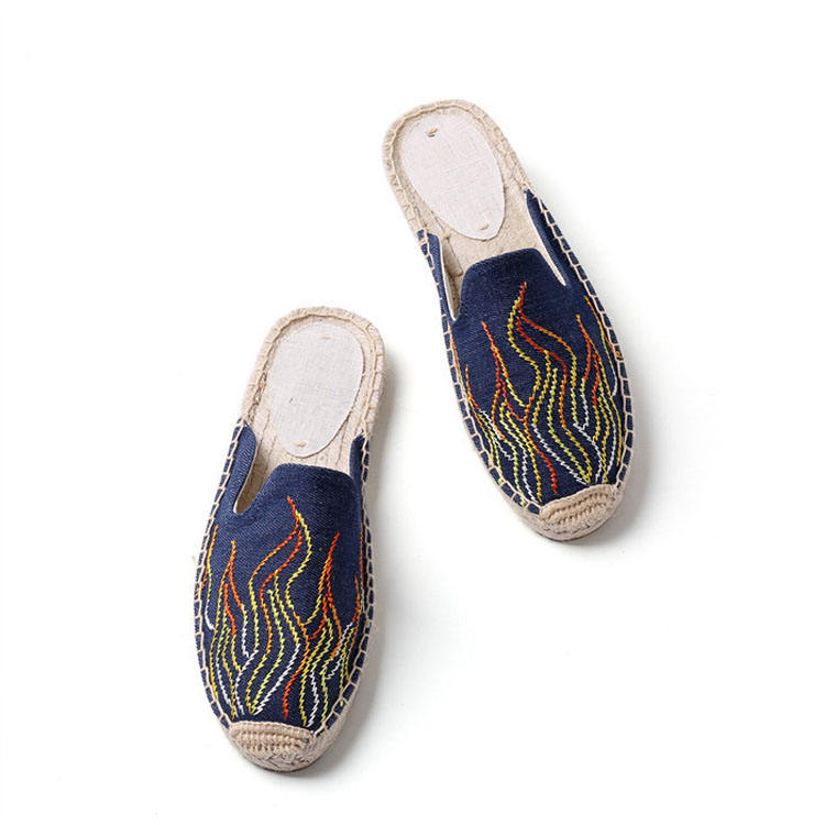 Espadrillas personalizzate in tela blu ciabatte da donna con tacco piatto ricamato espadrillas con zeppa pantofole di peluche da donna