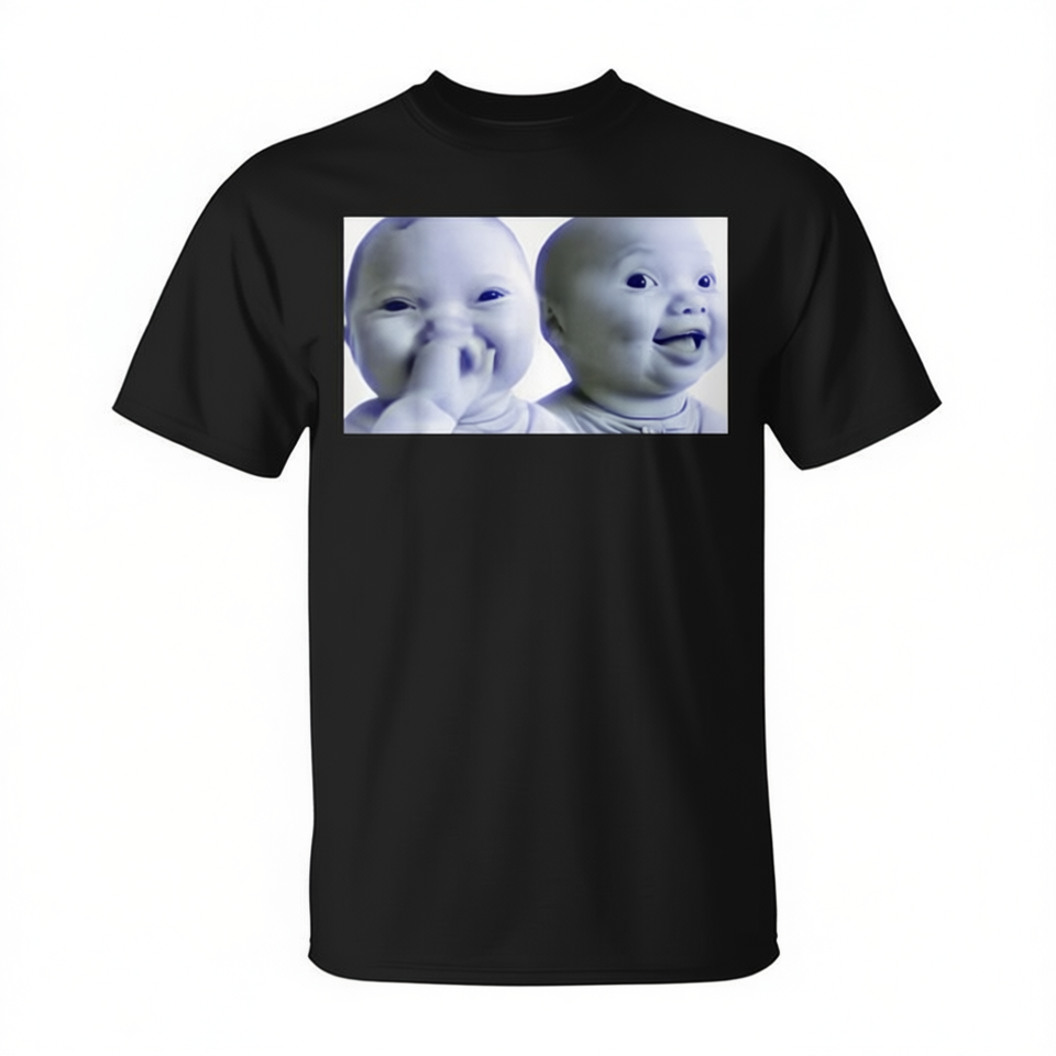 T-shirt Promozionale Niche Baby Gen Z Meme AI Virale con Riso e Risatine