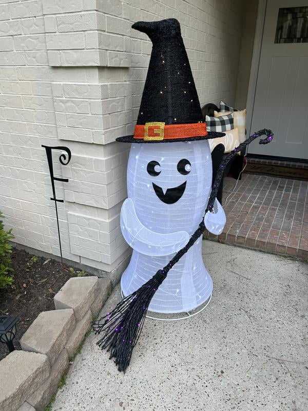Decorazione Halloween Pop-Up 3D Luminosa con Fantasma e Scopa da Strega, Ornamento da Esterno Pieghevole a Prezzo di Fabbrica Nicro