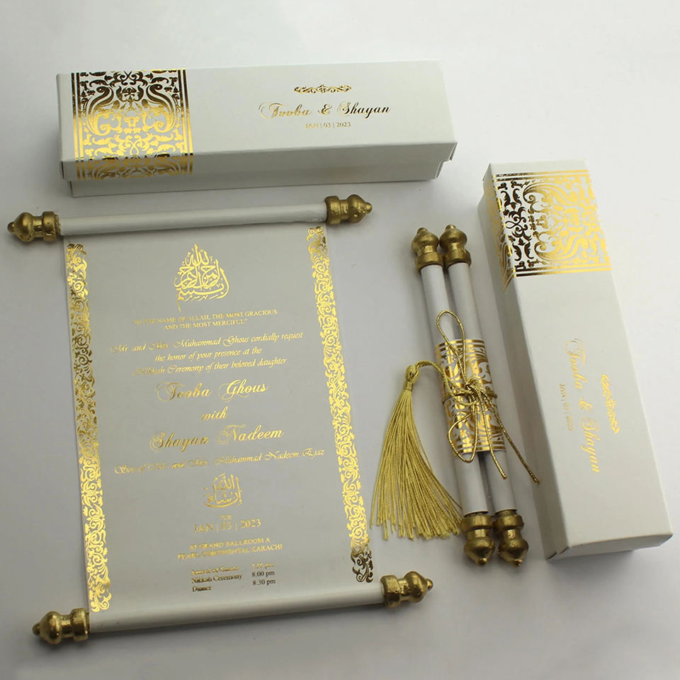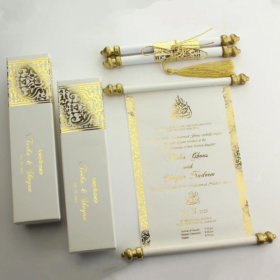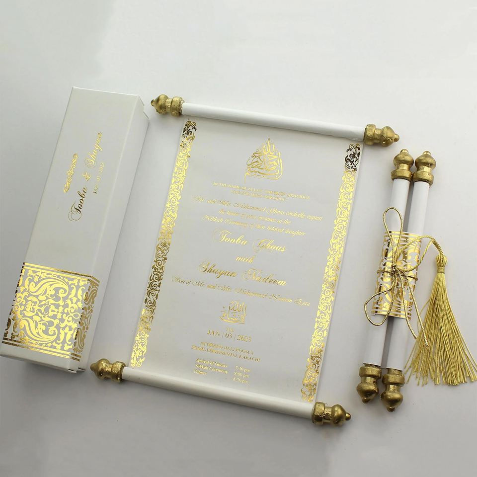 Biglietti d'Invito di Nozze Nicro Originali di Fabbrica Personalizzati in Carta Arrotolata Unici di Lusso a Pergamena Classica con Nastro a Nappa