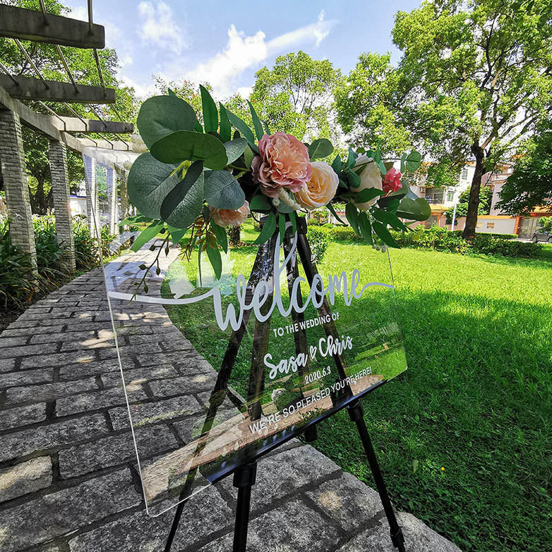 Nicro fabbrica originale personalizzata in stile Ins piastra di fidanzamento decorazioni per ingresso in acrilico chiaro segno di benvenuto per matrimonio