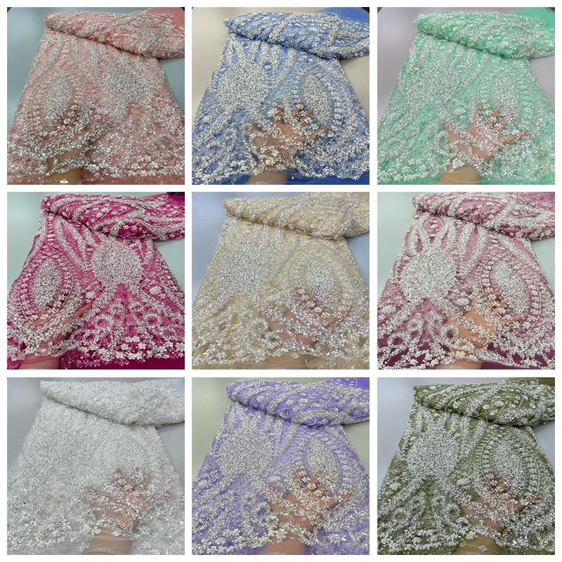 Tessuti in Pizzo con Paillettes di Alta Qualità Nigeriani, Pizzo Delicato per Abiti da Sposa e da Cerimonia