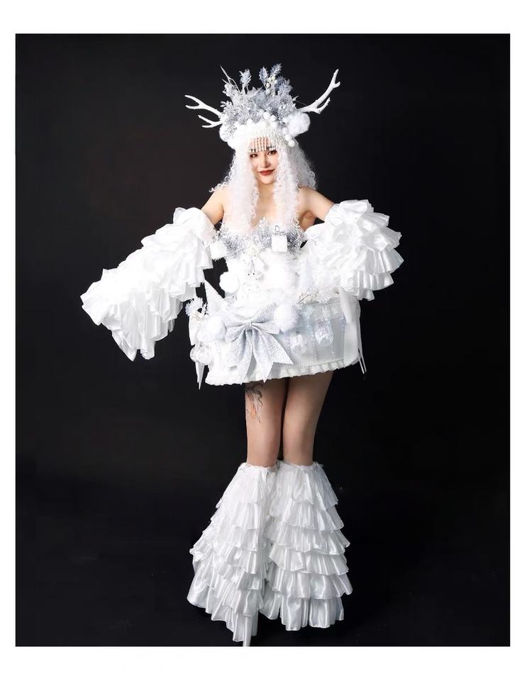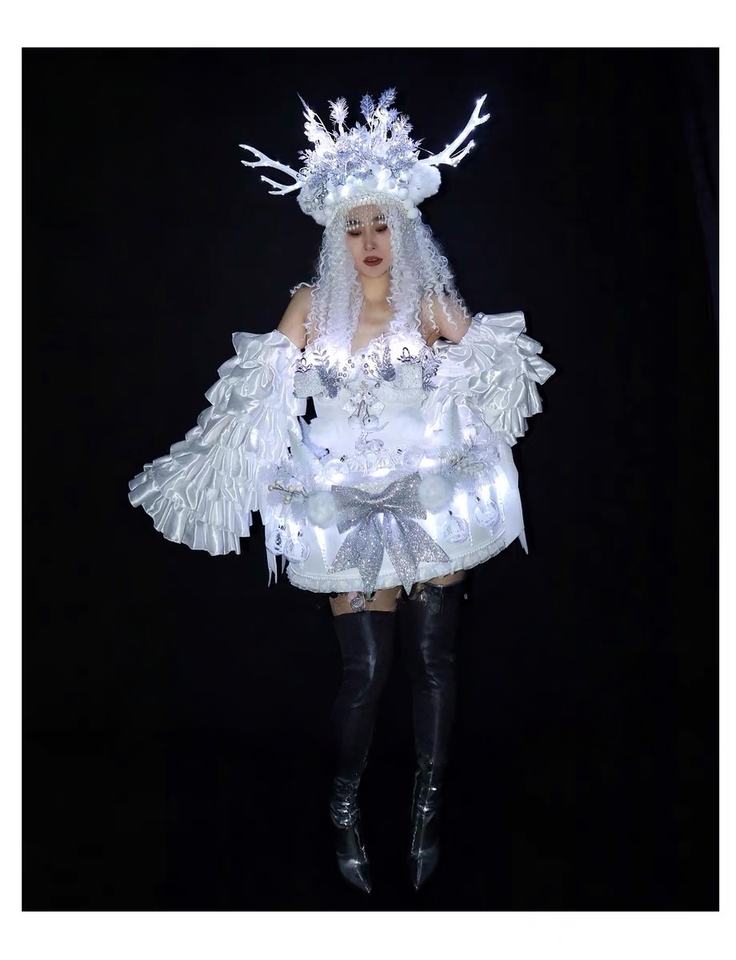 Nightclub Bar Gogo Girl Christmas LED Light Snowflake Ice Sculpture DS Singer White Cute Stage Dance Adult Performance Costume