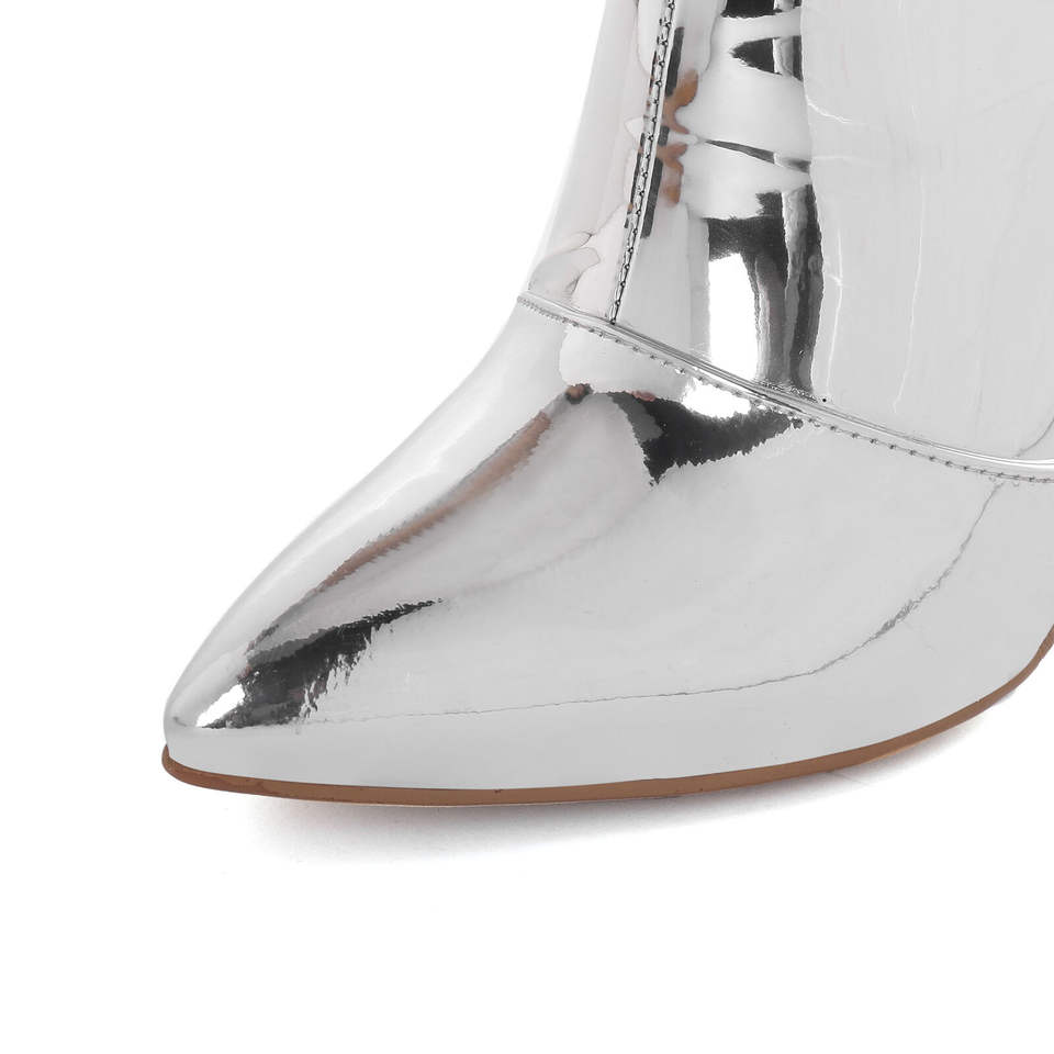 Product name::Nightclub Shoes Silver Pointy Toe Leathe Over the Knee Boots for Women