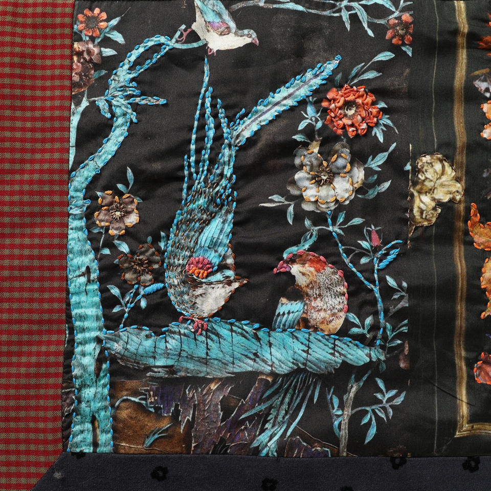 Nightingale and Garden Pattern Vintage Style Elegant Wool and Silk Patchwork Knitted Shawl for Women Shoulder Scarf