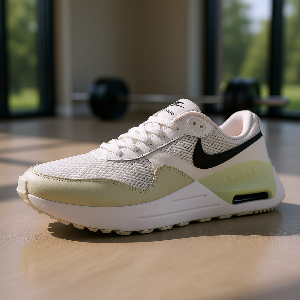 Nike Air Max Sytm Women's Fitness Shoes White Black Mesh Upper Rubber Outsole EVA Midsole Spring Training