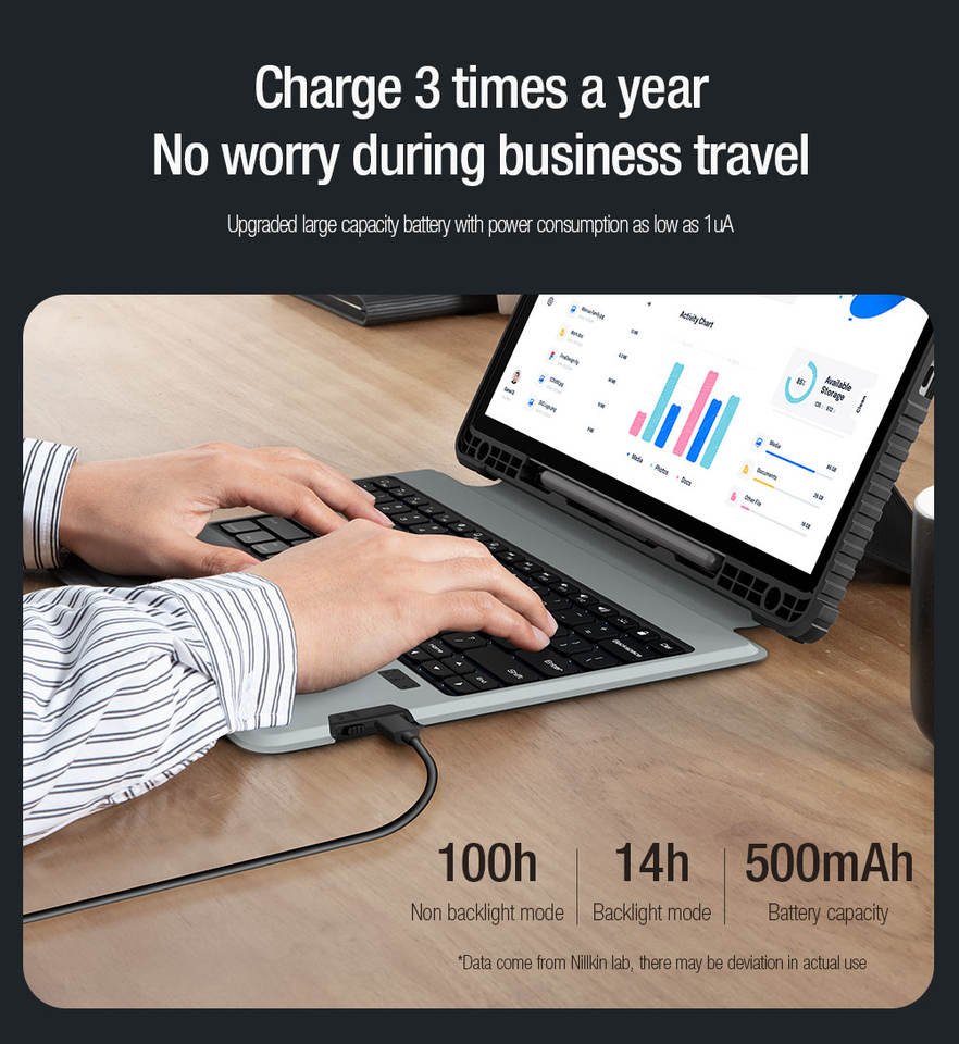 Nillkin custodia rimovibile 7 colori tastiera retroilluminata senza fili per Samsung Galaxy Tab S9/S9 + custodia per tastiera antiurto con copriobiettivo