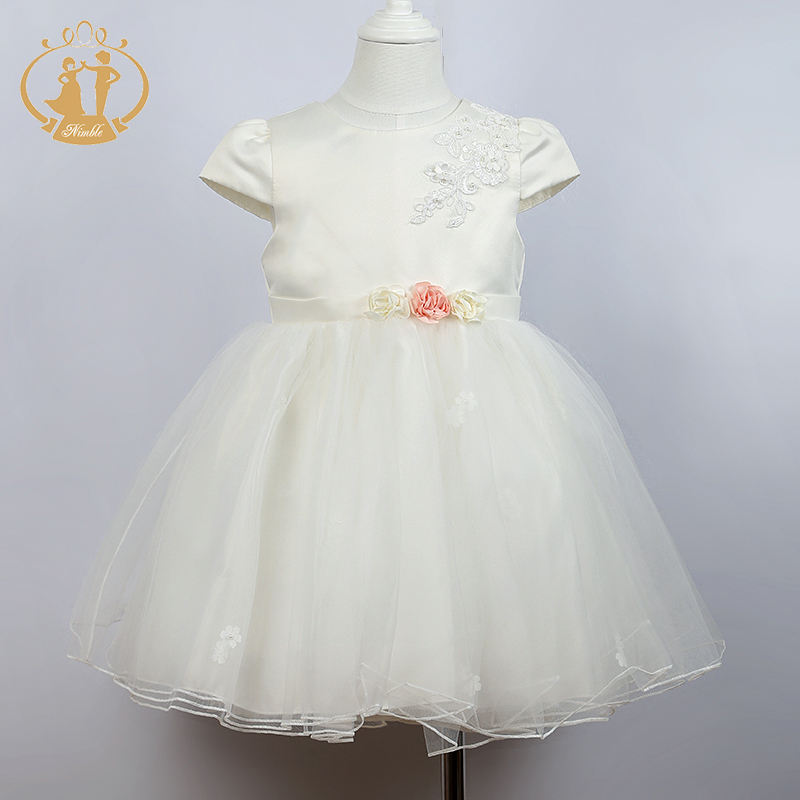 Agile Più Nuovo Disegno Elegante Che Borda il Fiore di Raso Manica Corta Vestiti Dalla Ragazza Del Bambino di 1-4 Anni