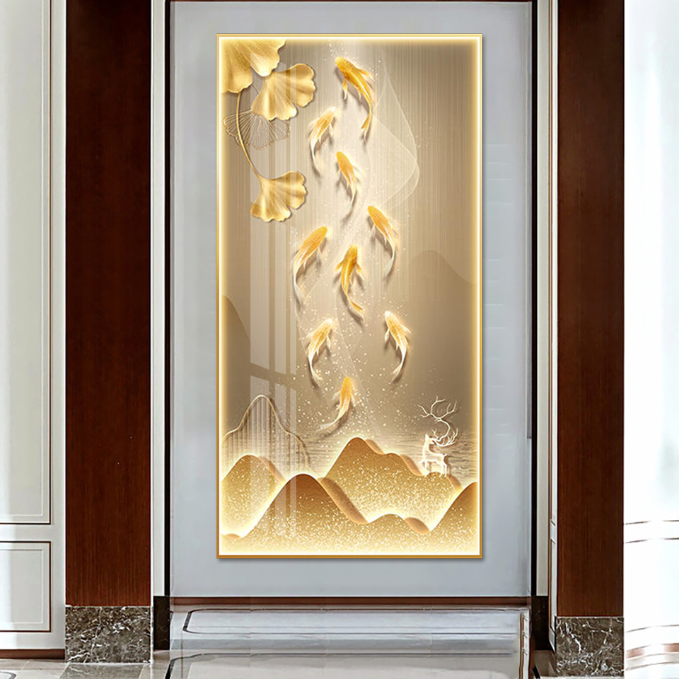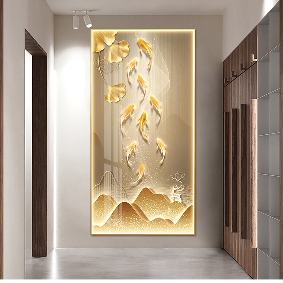 Nine Fish Picture Entrance Decoration Painting Modern Simple Decoration Painting Large Led Crystal Porcelain Painting