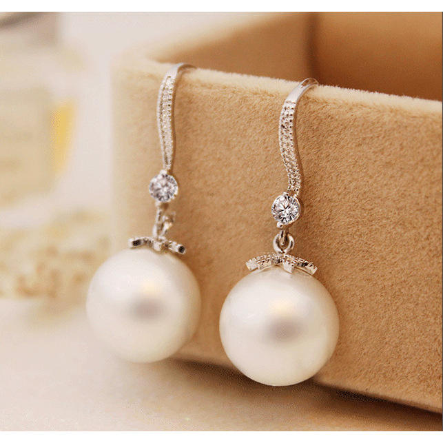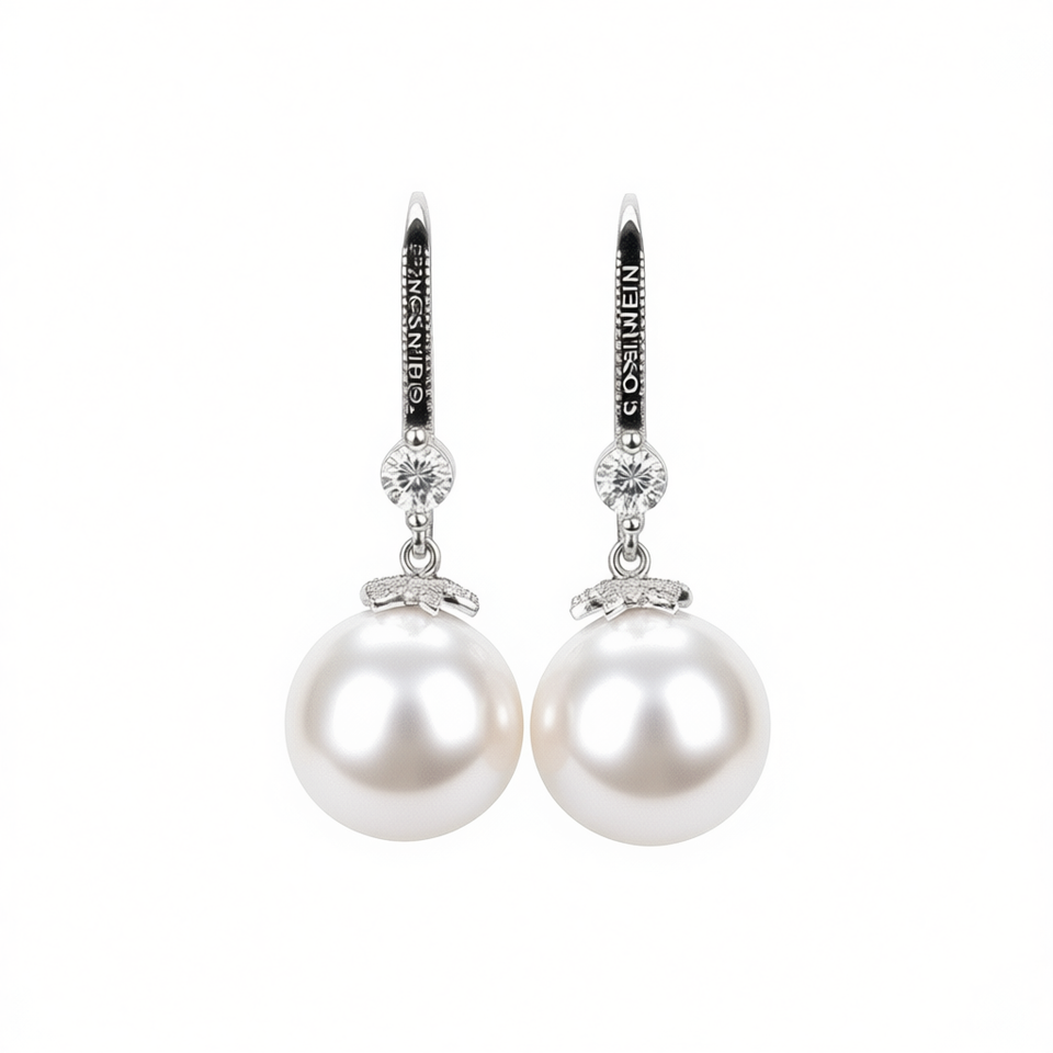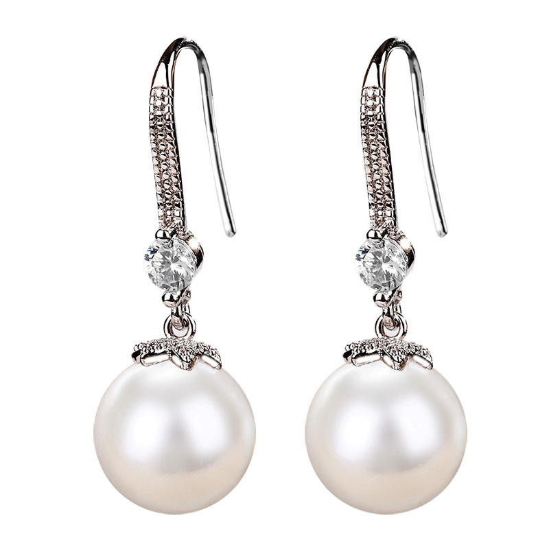 Nineso White Akoya Pearl Drop Earrings 925 Silver AAA Round Cultured Pearl Wedding Classic Women's Jewelry