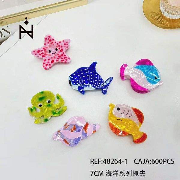 Nini Ocean Series Hair Claws 7Cm Colorful Sea Creatures Grip Clips For Kids Cute Cartoon Plastic Durable