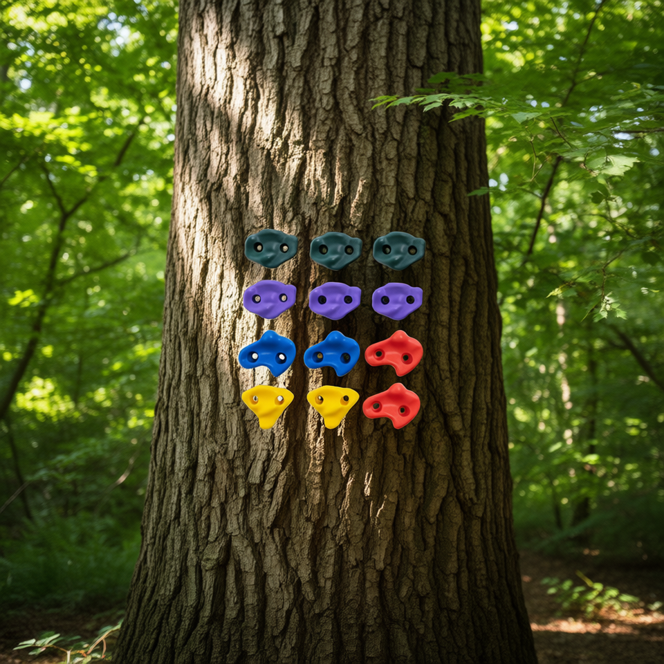 Kit di Presi per Arrampicata su Alberi Ninja, 12 Pezzi in Plastica, Accessori per Attrezzatura da Arrampicata Outdoor con Sacca con Coulisse