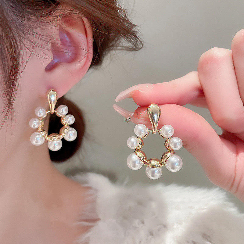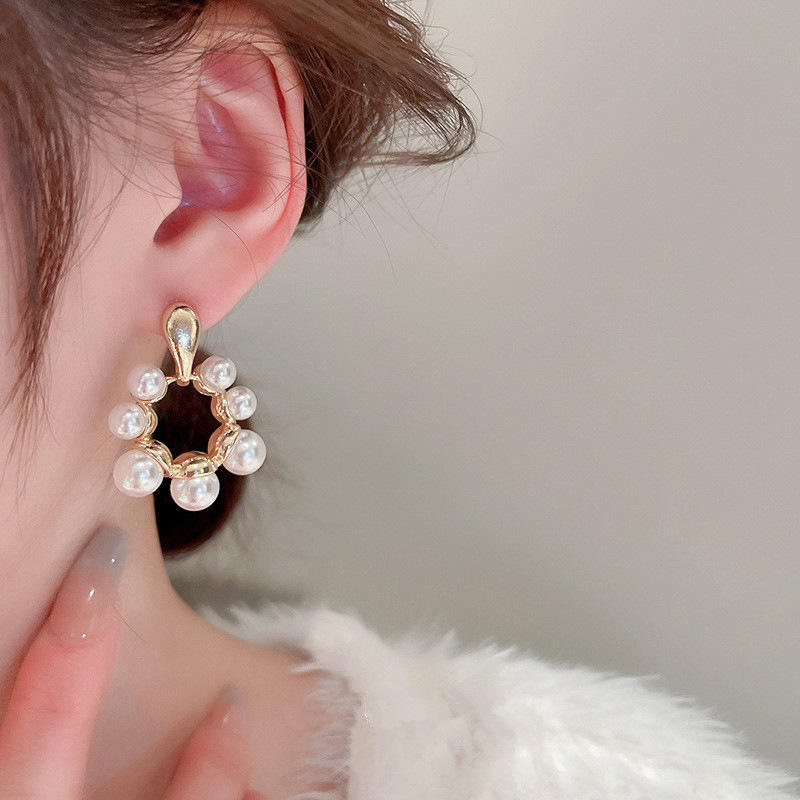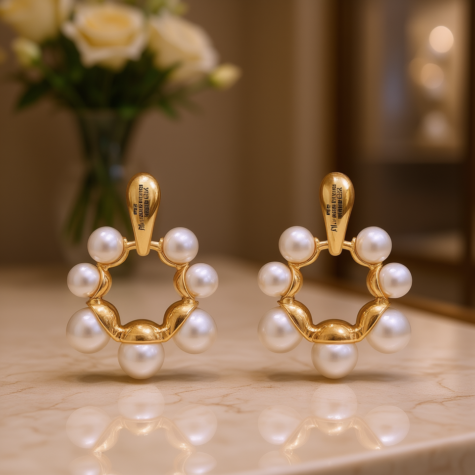 Niuqian E2459 Gold Hoop Earrings Freshwater Pearl Geometric Design Women's Classic Jewelry Everyday Wear