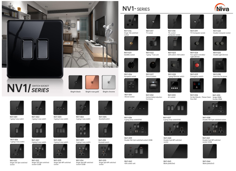 Niva Custom 1 Gang Dimmer interruttore a muro-levetta in acciaio inossidabile con luce in ottone, Regno Unito Standard 220V 13A per prese elettriche domestiche