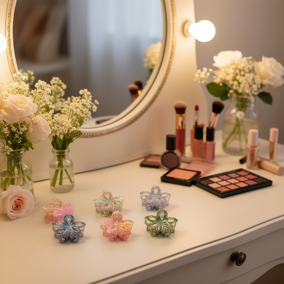 Nk Hollow Flower Hair Clip 8Cm Colorful Plastic For Women And Girls