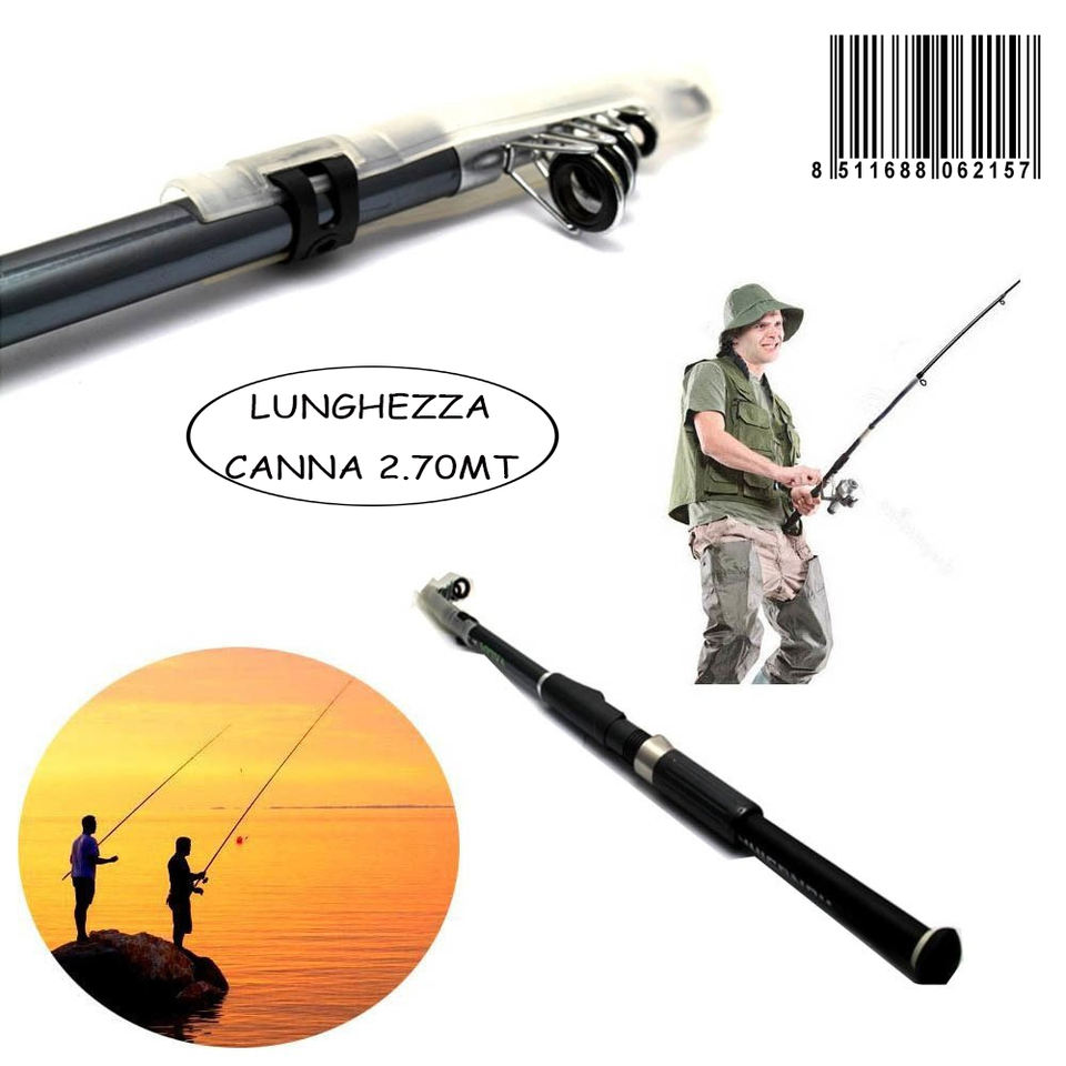 Canna da Pesca in Mare N.2 2.7M in Fibra di Carbonio Azione Media-Veloce per Acqua Salata con Impugnatura EVA e Manico a Sigaro