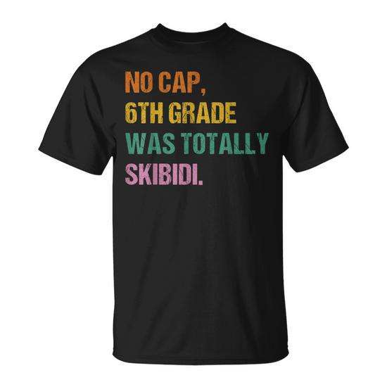 No Cap 6Th Grade Was Totally Skibidi T-shirt per adulti, girocollo unisex, manica corta, stampa digitale, ritorno a scuola, laurea