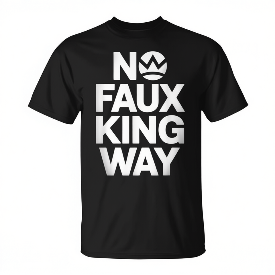 T-shirt No Faux King Way nera con scollo rotondo, unisex, taglia media per adulti
