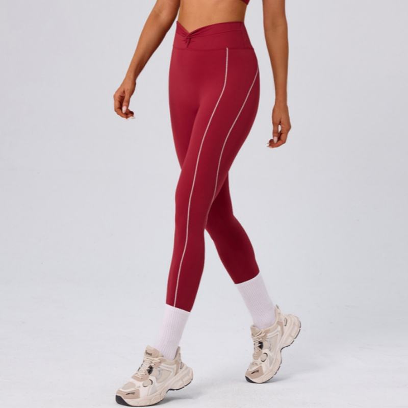 Leggings da Yoga a Vita Alta Senza Cuciture Frontali con Nodo Incrociato, Effetto Push-Up, Strisce Bianche a Contrasto per Palestra e Corsa