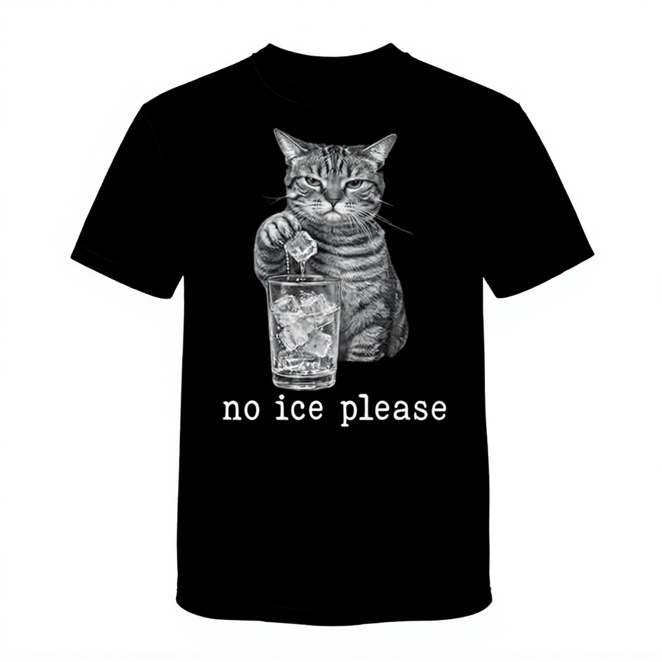 T-shirt promozionale con design grafico a tema gatto: No Ice Please Cat Against Ice