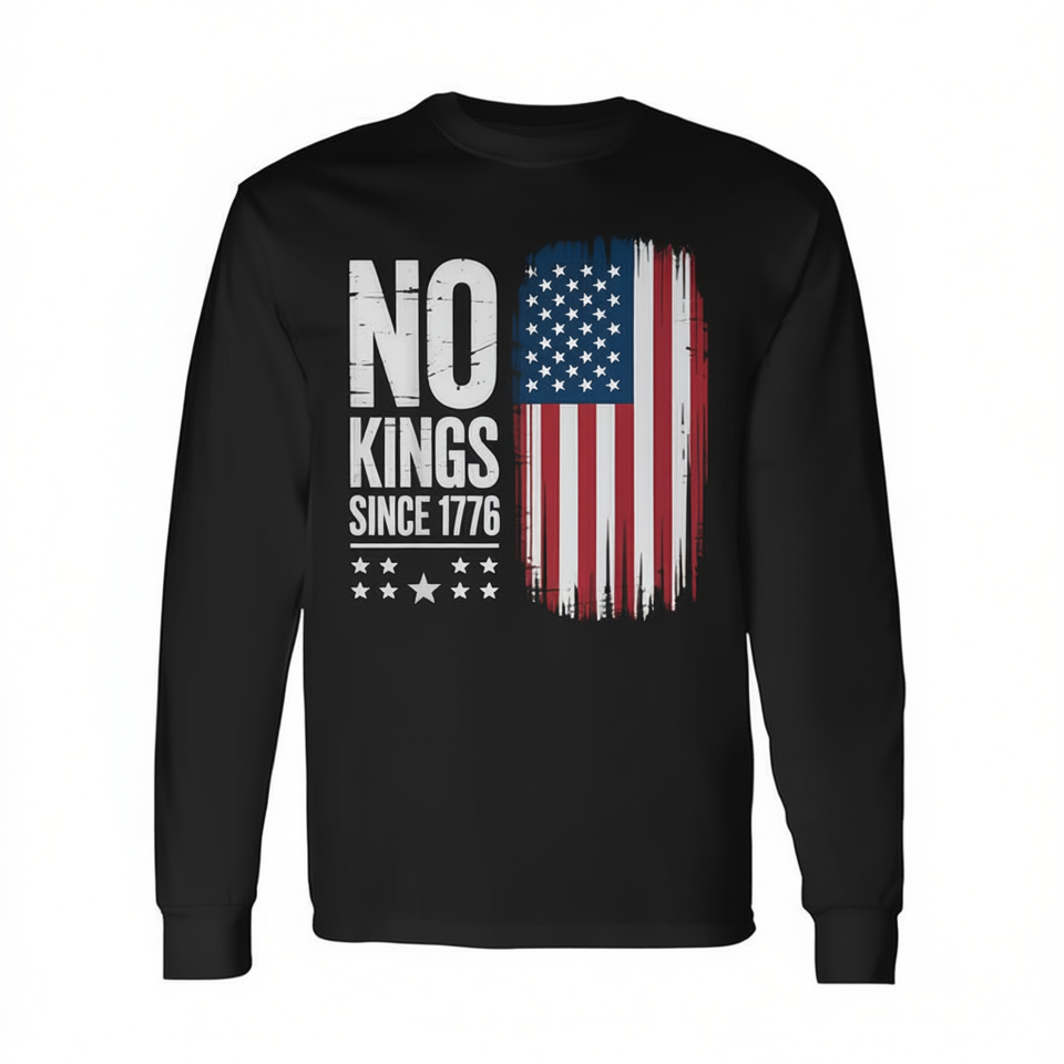 No Kings Since 1776 T-shirt a maniche lunghe con bandiera americana per il Giorno dell'Indipendenza